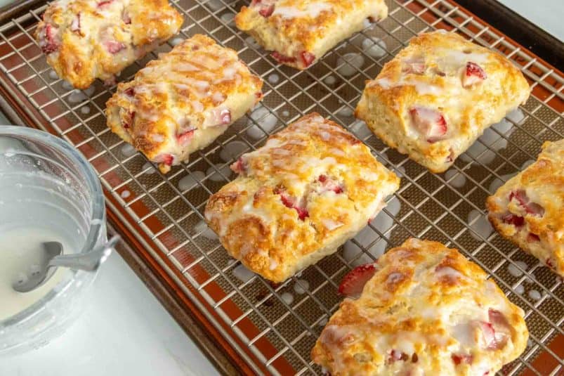 These homemade strawberry biscuits are soft, buttery, and bursting with sweet, juicy berries in every bite. They come together easily and bake up beautifully golden, with pockets of fresh strawberries that make them taste like summer. A simple glaze drizzled over the top adds just the right amount of sweetness without overpowering the natural fruit flavor. Whether you're enjoying them with your morning coffee or as a mid-morning snack, these biscuits feel like a little homemade indulgence. They're the kind of treat that makes you slow down and savor the moment.