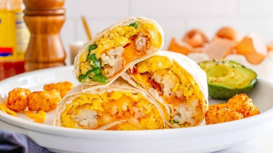 You're going to absolutely love these breakfast burritos—they're the kind of meal that makes mornings something to look forward to. Each one is generously stuffed with crispy tater tots, fluffy scrambled eggs, smoky bacon, and plenty of melty cheese, all wrapped up in a warm tortilla. They strike the perfect balance between comforting and satisfying, with just the right mix of textures and flavors in every bite. Whether you're enjoying them fresh off the skillet or reheating one on a busy weekday, they’re hearty enough to keep you full and happy for hours. Trust us—these burritos are way more than just your average breakfast.