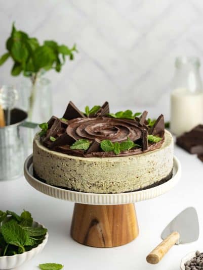 No-Bake Vegan Mint Chocolate Chip Cheesecake