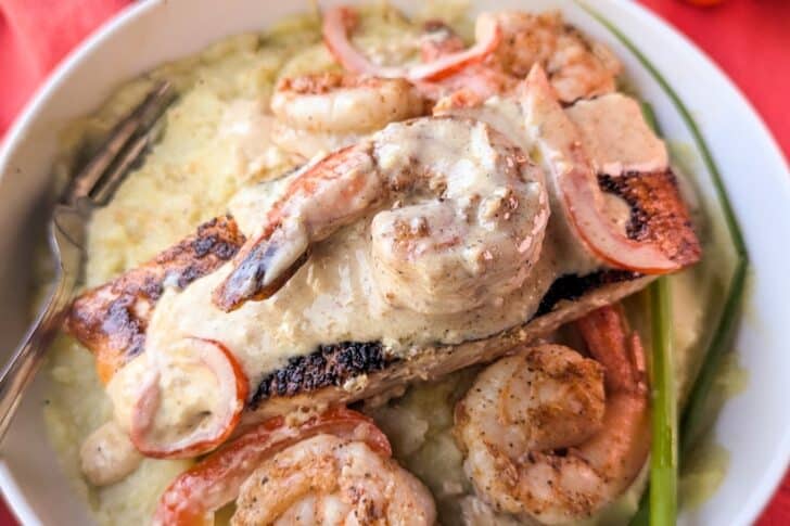 Easy Cajun Shrimp and Salmon in Red Pepper Cream Sauce