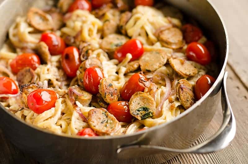 Chicken Sausage Fettuccine Alfredo