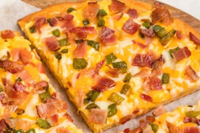 This breakfast pizza made with crescent roll dough is a fun and flavorful twist on your usual morning routine. Topped with fluffy scrambled eggs, crispy crumbled bacon, colorful diced peppers, and a generous sprinkle of both cheddar and mozzarella cheese, it’s the kind of meal that feels comforting yet exciting. The crescent roll base bakes up golden and flaky, making every bite satisfying and crave-worthy. Best of all, it comes together in just 20 minutes, so you can enjoy a hearty homemade breakfast without the wait. Whether you're feeding a crowd or just want something special for yourself, this easy recipe is sure to hit the spot.