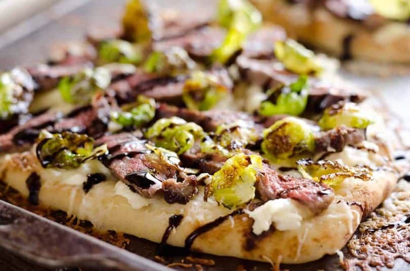Steak, Goat Cheese & Roasted Brussels Sprouts Flatbread