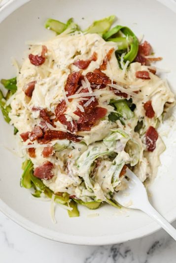 Asparagus Noodles with Alfredo Sauce and Bacon