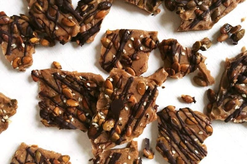 This pumpkin bark is a celebration of everything we love about fall. Crunchy toffee, warm pumpkin spice, and roasted pumpkin seeds come together with nutty sesame seeds, rich dark chocolate, and a sprinkle of sea salt for the perfect balance of sweet and savory. Each bite is full of texture and flavor, capturing the cozy essence of the season. It’s a treat that feels both indulgent and festive, perfect for sharing—or sneaking straight from the counter. This is truly what fall tastes like in every delicious bite.