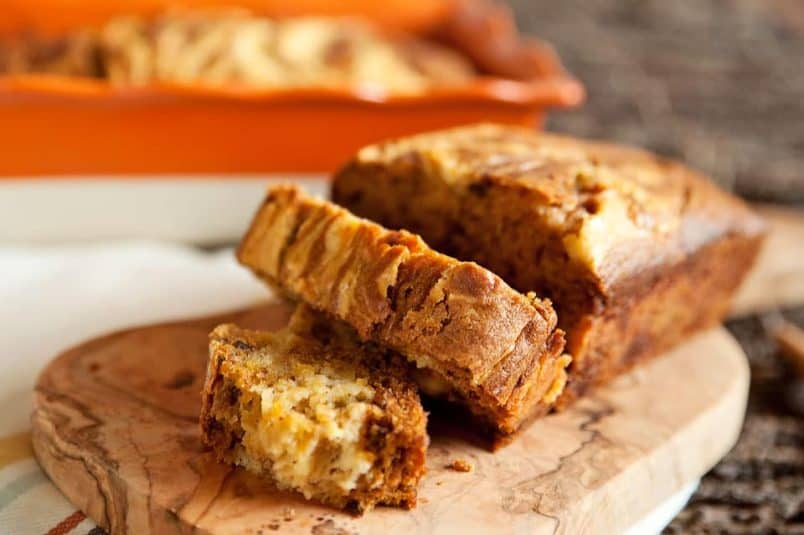 Pumpkin Pecan Bread with Orange Mascarpone Swirl
