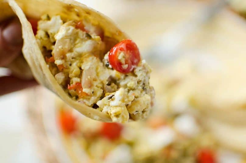 Get the Recipe: Goat Cheese & Pesto Veggie Scramble