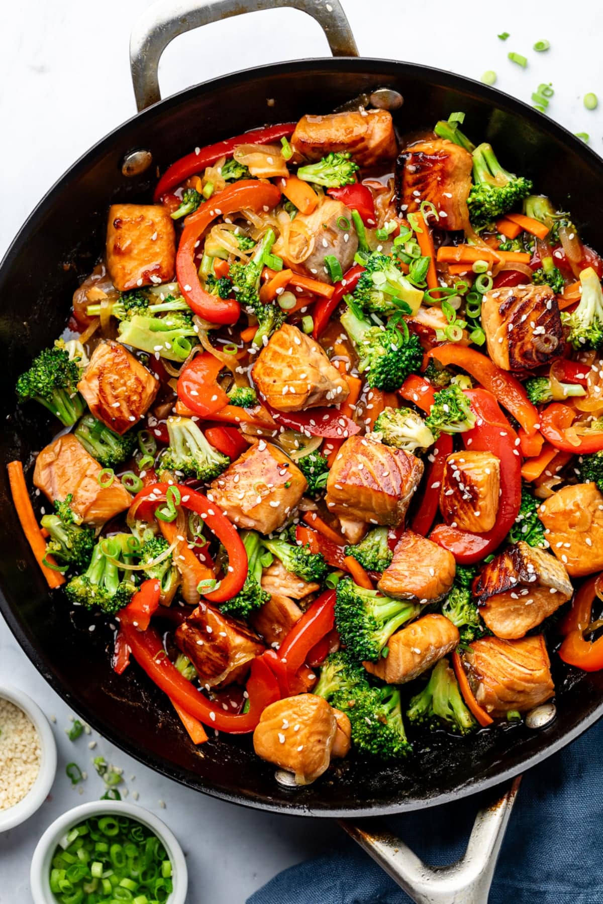 This salmon stir fry is bursting with color and fresh flavor, making it a quick yet wholesome meal you’ll want to make again and again. Tender pieces of salmon are cooked with a mix of crisp, vibrant vegetables, creating a beautiful balance of textures in every bite. Everything comes together easily in one pan and in under 20 minutes, making it perfect for busy weeknights. You can enjoy it just as it is or serve it over fluffy rice or noodles for something even more filling. It’s a nutritious, satisfying dish that makes eating seafood feel both effortless and exciting.