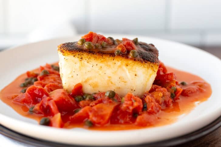 Pan Seared Chilean Sea Bass with Caper Tomato Butter