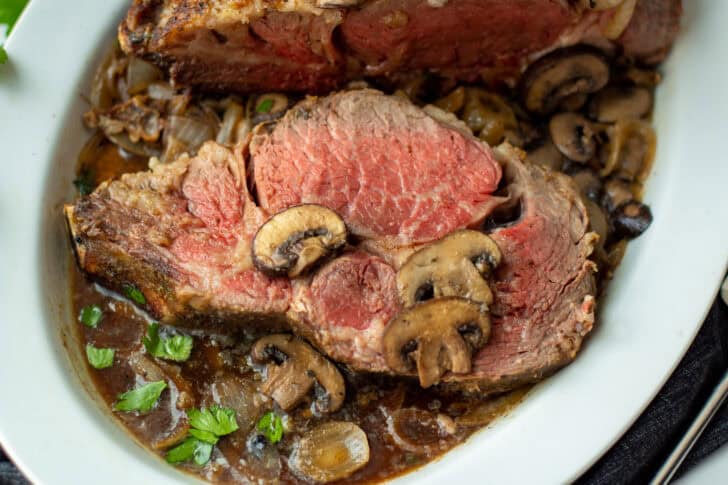 Holiday Rib Roast with Caramelized Onion and Mushroom Pan Sauce