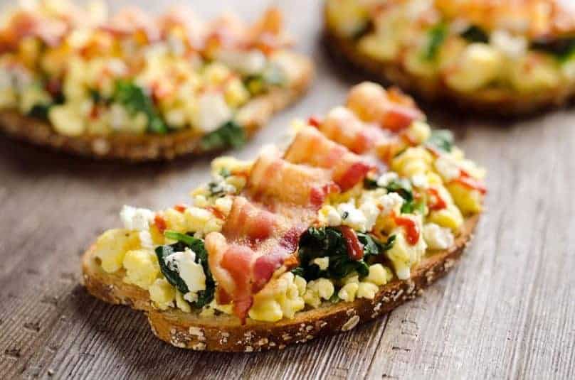 Sriracha Bacon Bleu Cheese Breakfast Toasts