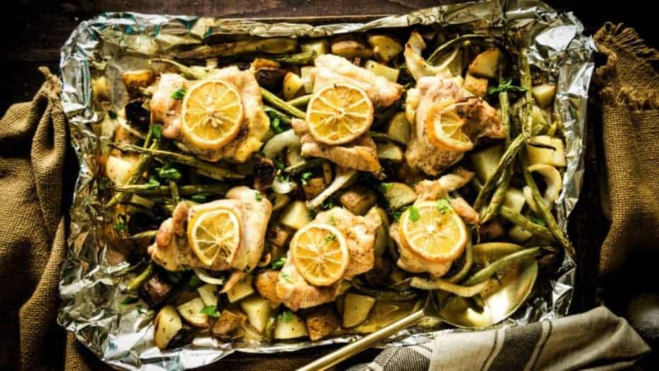 Sheet Pan Chicken Thighs with Lemons and Potatoe