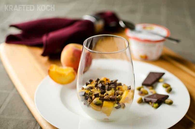 Peach Yogurt Parfait with Pistachios and Dark Chocolate