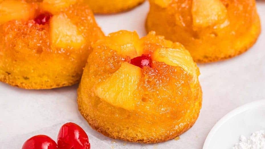 Treat yourself to these irresistible pineapple upside-down cupcakes that are as fun to make as they are to eat. Each one is packed with sweet, juicy pineapple flavor and topped with a caramelized cherry center that adds a nostalgic touch. The cakes themselves are soft, tender, and wonderfully moist, making every bite a little moment of joy. They’re a delightful twist on the classic dessert, perfectly portioned and easy to share. Whether you're baking for a party, potluck, or just craving something sweet, these cupcakes are sure to be a crowd favorite.
