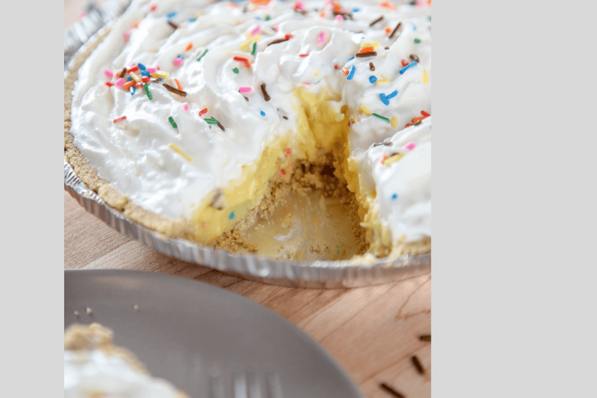 Cake Batter Cream Pie: Rich and creamy filling that tastes just like cake batter inside a graham cracker crust. Finally you can have your cake and eat pie too!