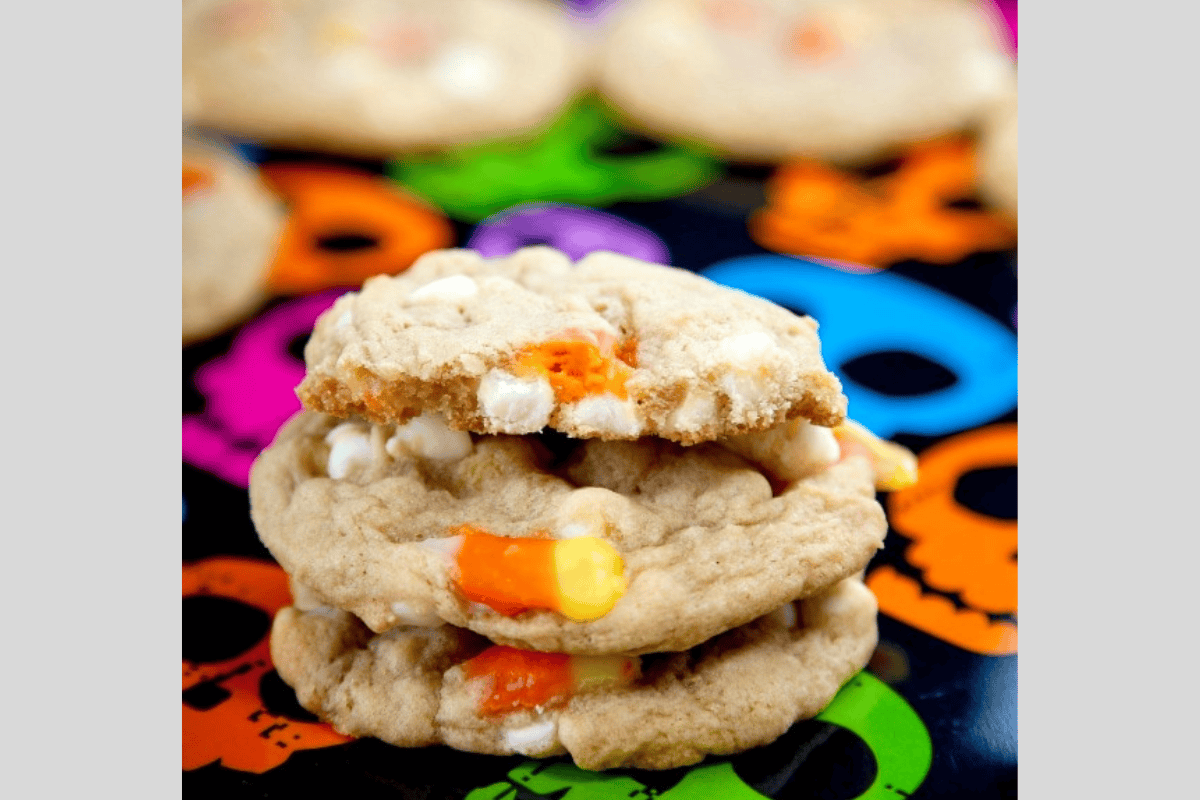 Candy Corn Cookies: Soft and chewy cookies studded with creamy white chocolate chips and candy corn.
