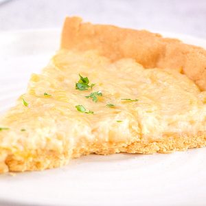 I love decadent side dishes like my loaded mashed potato casserole, hushpuppies, and mashed potato cakes. Another side dish I cook often is this onion tart. It tastes like French onion soup but is easy to slice and eat while mingling with guests. The slow cooked onions become so sweet and flavorful, and the filling is rich without every feeling heavy.