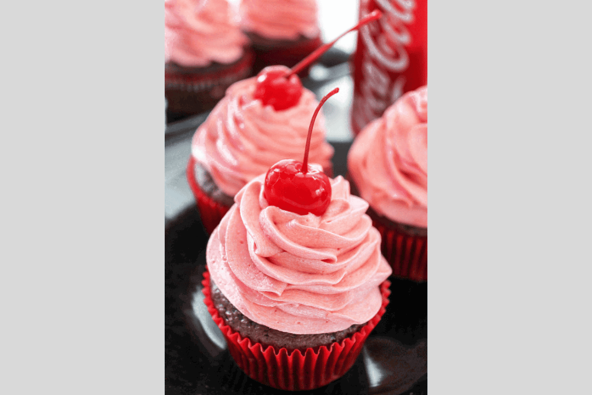 perfCherry Coke Cupcakes: The sweet taste of your favorite summer drink in just a few bites. Refresh yourself with a rich chocolate cherry cupcake with Cherry Coke in the batter AND the frosting.