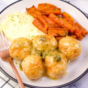 My Chicken Piccata meatballs are moist, tender, and coated in a buttery lemon caper sauce. This easy recipe makes the classic chicken piccata weeknight friendly.