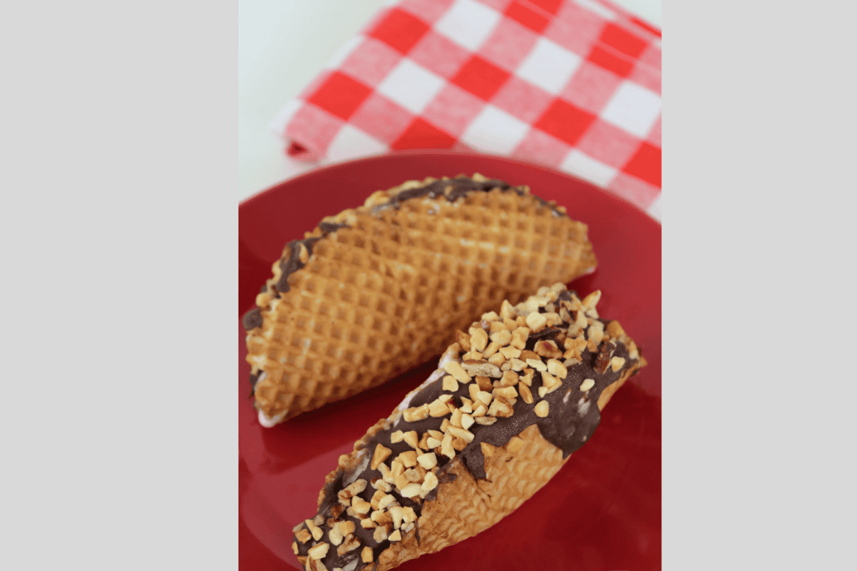 - Work quickly as the waffle bowls will only stay pliable for a short period of time. The shell also hardens very fast so add the peanuts as soon as the taco is coated.