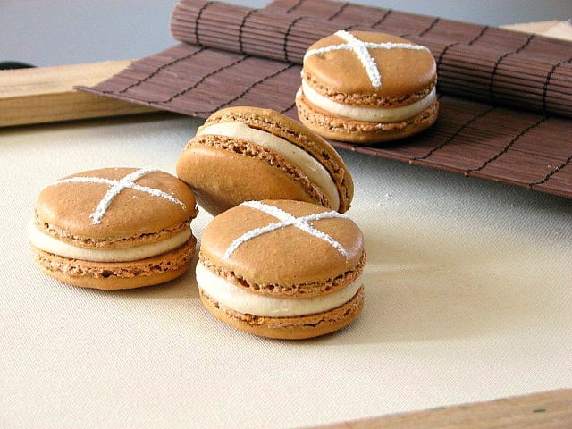 Hot Cross Bun Macarons All the delicious flavors of a breakfast treat in cookie form.