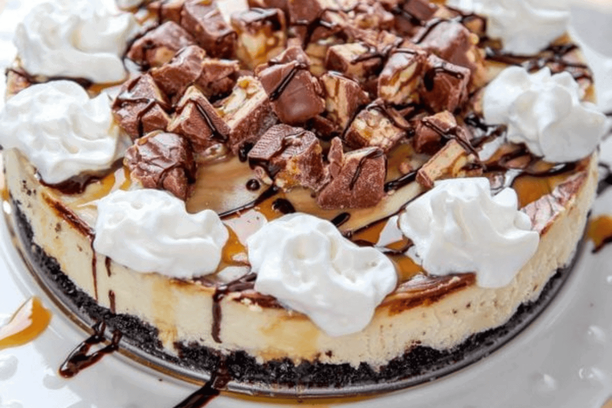 Smooth creamy snickers cheesecake with caramel, chocolate, and tons of candy bars. This cheesecake recipe tastes just like my favorite candy bar. Get the recipe: Snickers Cheesecake