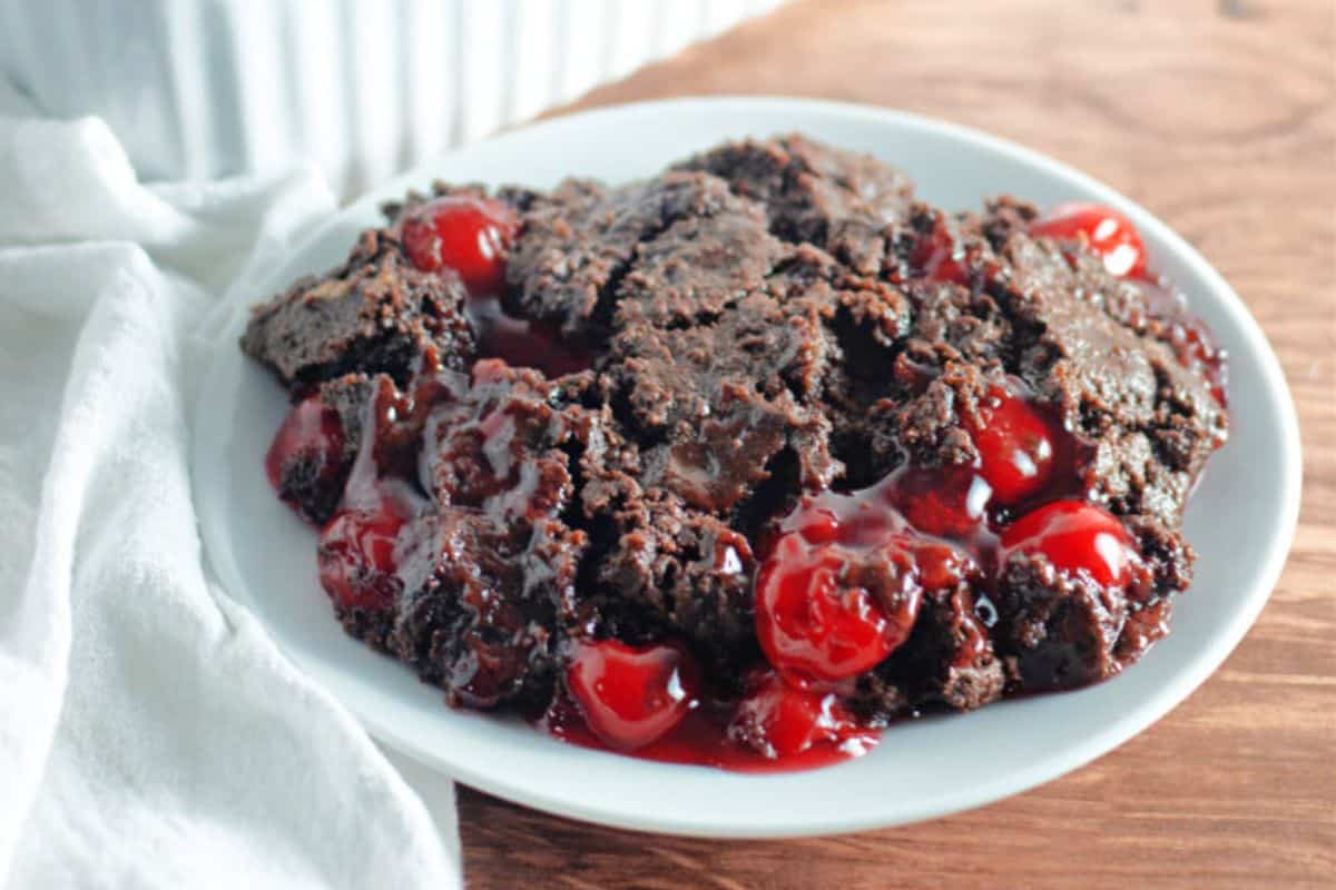 This four ingredient cake is loaded with chocolate and cherry flavor. It is so easy to make that you can dump the ingredients together on the busiest night and have a dreamy dessert ready in no time.