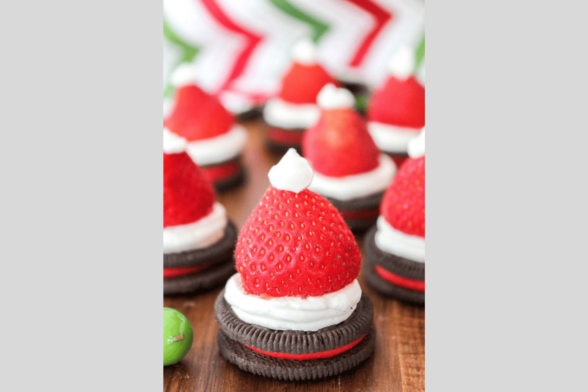Oreo Santa Hats: Oreos decorated to look just like Old St. Nick's Hat. Christmas dessert can not get any easier or cuter than this!