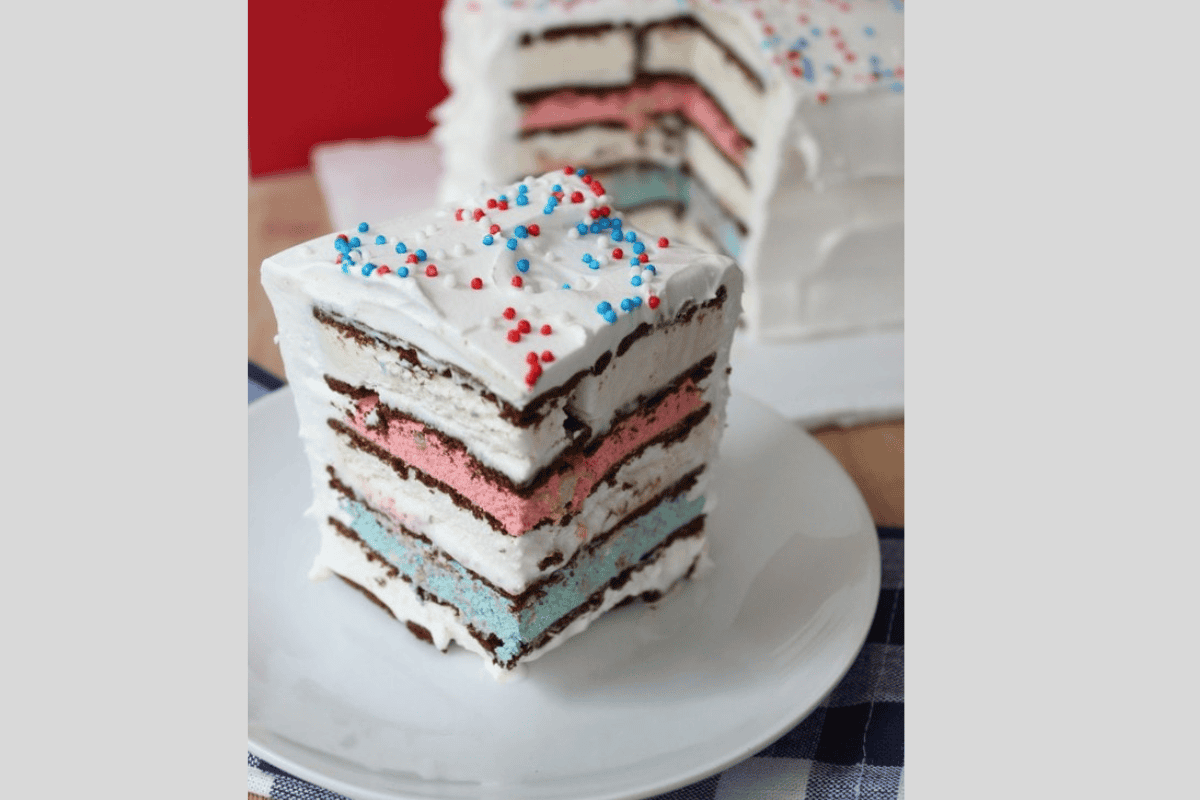 My version uses red and blue ice cream for an even more stunning presentation. Now you can wow your guests at your 4th of July picnic without slaving (or stressing) over piping a cake!