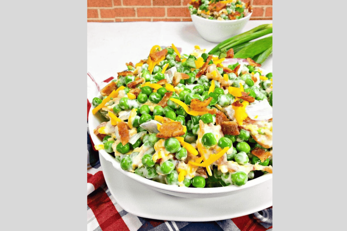 This creamy pea salad is the ultimate no-cook side—crunchy, cheesy, and packed with flavor. Just six ingredients and a few minutes to prep make it perfect for any picnic or BBQ.