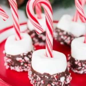 - Stick a large candy cane in the center of each marshmallow for serving if desired.