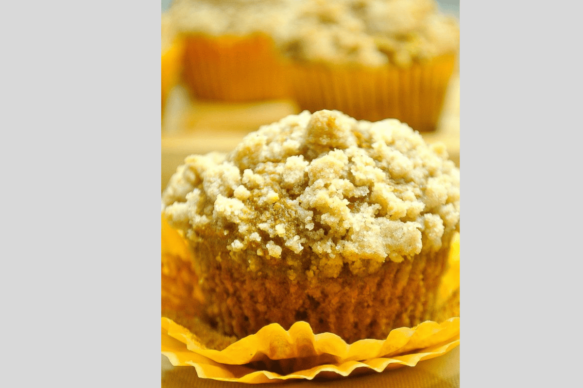 Tender pumpkin muffins topped with a buttery streusel topping. These fluffy muffins are the best Fall breakfast treat!