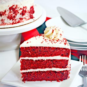 I love making layer cakes like my banana cake, carrot cake, and Reese's cake for holidays and birthdays. Another favorite especially this time of year for Valentine's Day is my Red Velvet cake. First, let me tell you what it is NOT. It is not dry, bland, or just chocolate cake dried red. It is tender, moist, and topped with fluffy frosting. It's also perfect for birthdays and Christmas.