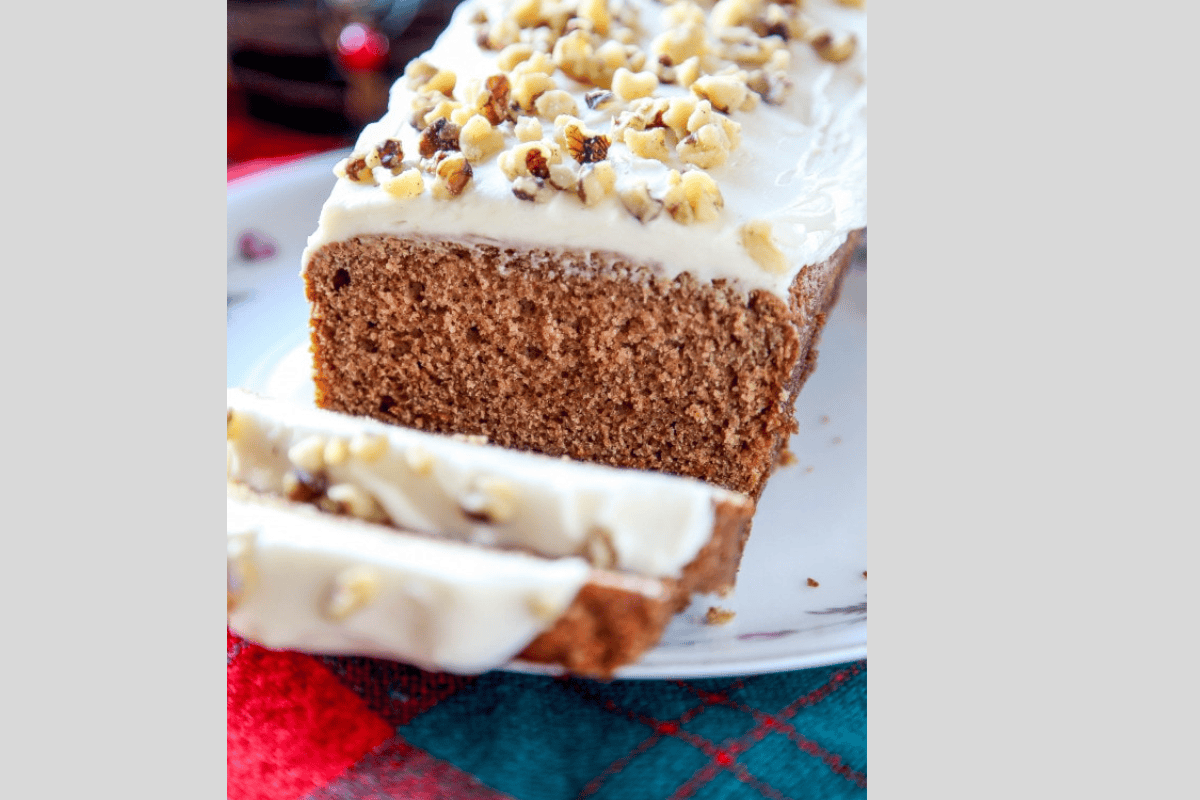 - Spread frosting evenly over the gingerbread loaf. Sprinkle with chopped walnuts if desired.
