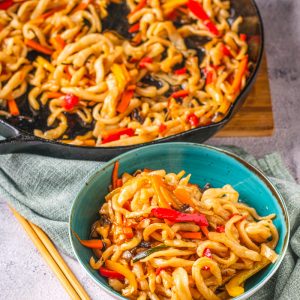 My Yaki Udon features crispy vegetables and perfectly chewy noodles in a glossy sauce that hits all the right notes. This easy recipe is ready in around 15 minutes and tastes way better than anything you can order for takeout.