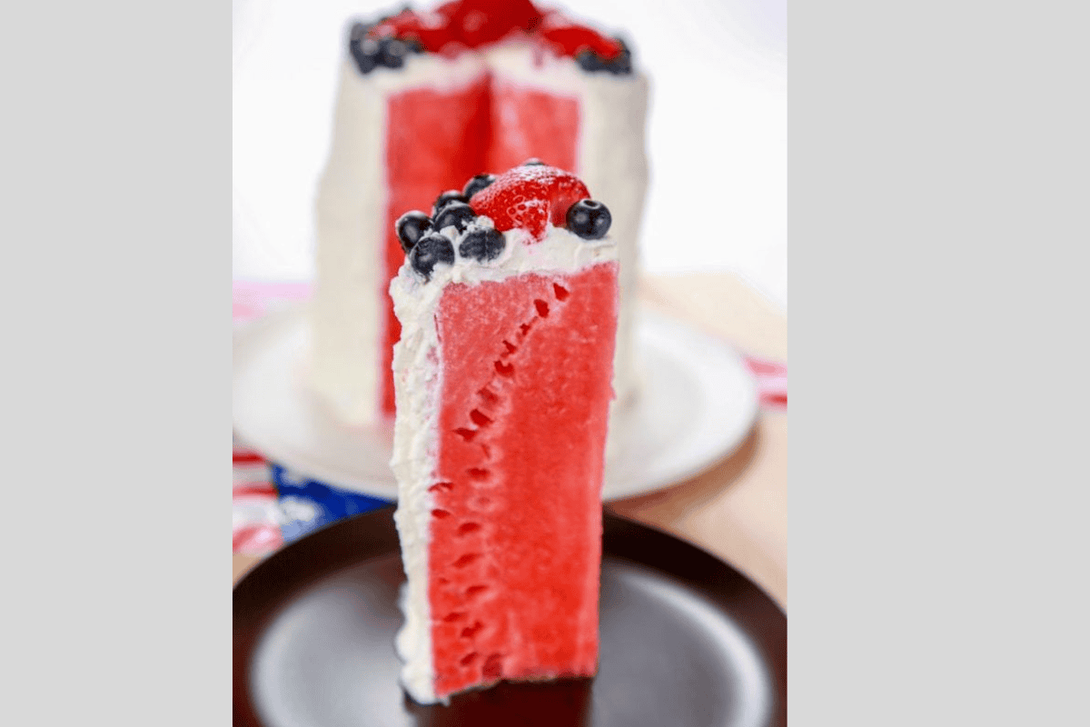 I love serving the classics like bbq pork tenderloin, instant pot baked beans, and Mexican street corn when hosting BBQs. This Watermelon cake makes the perfect no bake dessert. It is refreshing, naturally hydrating and light enough after a big meal. It would even make the perfect birthday cake for watermelon lover. Watch the oohs ad ahs as this cake that looks like it came straight from a bakery is actually fresh fruit! Worried guests could be disappointed? Make my watermelon cupcakes made with actual watermelon cake batter and buttercream frosting too!