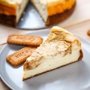 Pour cheesecake batter onto crust in springform pan. Allow at least ½″ of room at the top for the cheesecake to expand while cooking, so you may end up with a bit of excess batter.