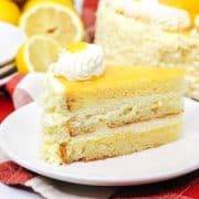 My lemon curd cake is moist, tangy, and just sweet enough. It's filled with rich cream cheese frosting, and topped with the perfect amount of lemon curd.