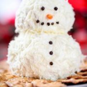 Flavorful cream cheese covered with more cheese, and shaped to look like an adorable snowman.