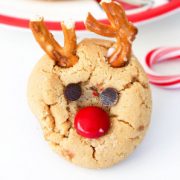 Peanut Butter Reindeer Cookies: Chewy peanut butter cookies decorated to look like a reindeer. Cute and SO easy!