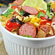 Smoky sausage, sweet pineapple, and spicy peppers come together in this hearty dish! Ready on your stovetop in 20 minutes or less!